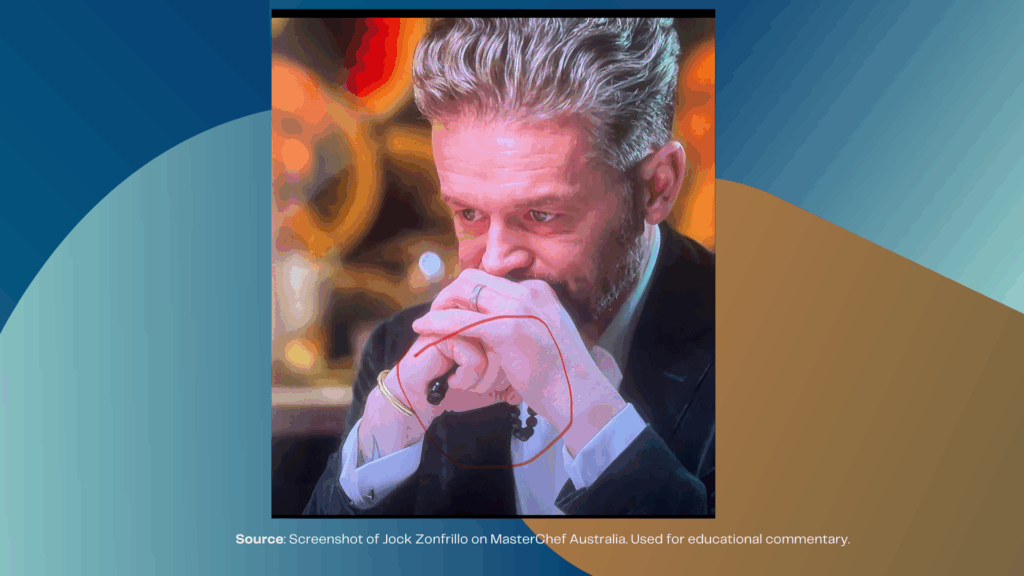 And then, across the world on MasterChef Australia, well-known judge Jock Zonfrillo shares his own regulation ritual – the worry beads he carries everywhere, rolling them between his fingers to gently stimulate the acupressure points at their tips.